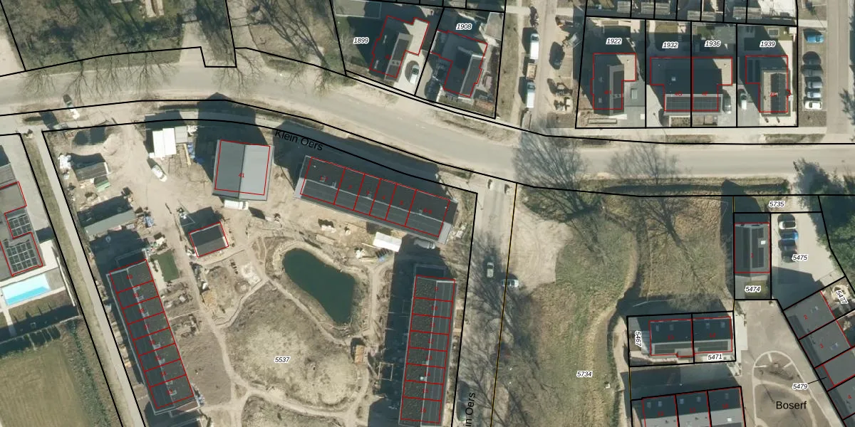 Het perceel waarop Klein Oers 6 staat heeft een oppervlakte van 8744 m². Dit is een zeer groot perceel. De perceeloppervlakte wordt geregistreerd door het Kadaster. Gedetailleerde informatie over de maten van dit perceel kunt u vinden in het rapport Kadastrale kaart met maatvoering van Klein Oers 6.