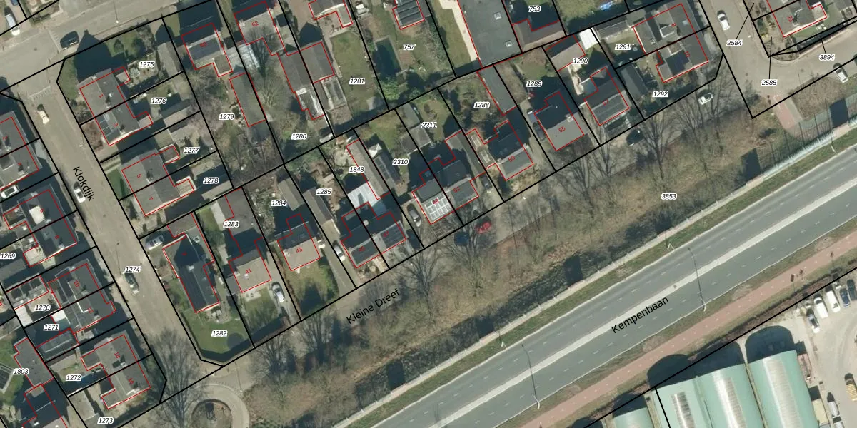 Kleine Dreef 49 is gelegen op kadastraal perceel VHV01E2310. Deze kadastrale aanduiding is uniek en wordt gebruikt door het Kadaster om eigendomsrechten en andere zakelijke rechten vast te leggen. Het perceel maakt onderdeel uit van de kadastrale gemeente Veldhoven.
