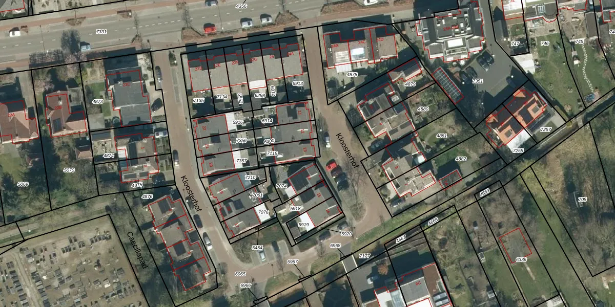 Kloosterhof 13 is gelegen op kadastraal perceel VHV01E7119. Deze kadastrale aanduiding is uniek en wordt gebruikt door het Kadaster om eigendomsrechten en andere zakelijke rechten vast te leggen. Het perceel maakt onderdeel uit van de kadastrale gemeente Veldhoven.