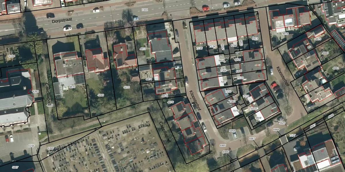 Het adres ligt op het perceel VHV01-E-4875, dat zich in de kadastrale gemeente Veldhoven bevindt. Het perceel is 268 m² groot. Dat is kleiner dan de gemiddelde perceeloppervlakte in Veldhoven, dat op 1485,46 m² ligt. Het grootste perceel in de kadastrale gemeente is 78,9 ha. Het kleinste perceel heeft een oppervlakte van 0 m². Er zijn geen andere adressen aanwezig op het perceel. De huidige grenzen van het perceel zijn digitaal in de Basisregistratie Kadaster (BRK) geregistreerd op 09-12-2008.