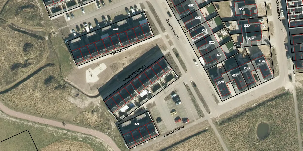 Het perceel waarop Koekoeksbloem 3 staat heeft een oppervlakte van 870 m². Dit is een groot perceel. De perceeloppervlakte wordt geregistreerd door het Kadaster. Gedetailleerde informatie over de maten van dit perceel kunt u vinden in het rapport Kadastrale kaart met maatvoering van Koekoeksbloem 3.