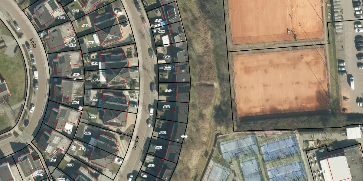 Het perceel waarop Koepel 21 staat heeft een oppervlakte van 185 m². Dit is een middelgroot perceel. De perceeloppervlakte wordt geregistreerd door het Kadaster. Gedetailleerde informatie over de maten van dit perceel kunt u vinden in het rapport Kadastrale kaart met maatvoering van Koepel 21.
