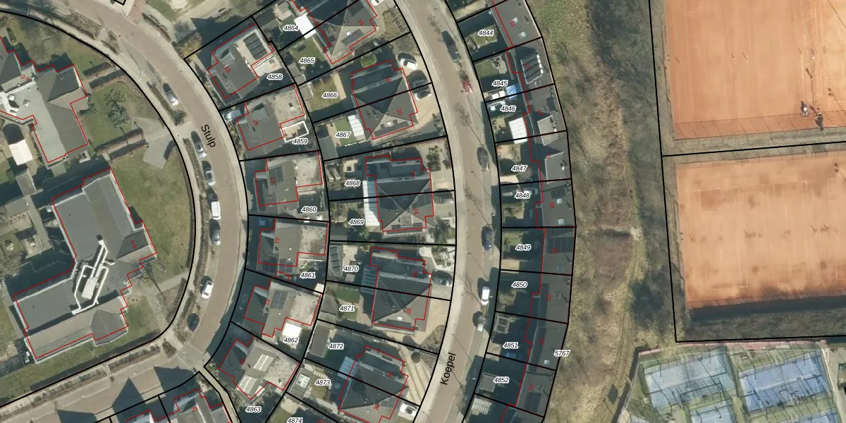 Het perceel waarop Koepel 24 staat heeft een oppervlakte van 335 m². Dit is een groot perceel. De perceeloppervlakte wordt geregistreerd door het Kadaster. Gedetailleerde informatie over de maten van dit perceel kunt u vinden in het rapport Kadastrale kaart met maatvoering van Koepel 24.