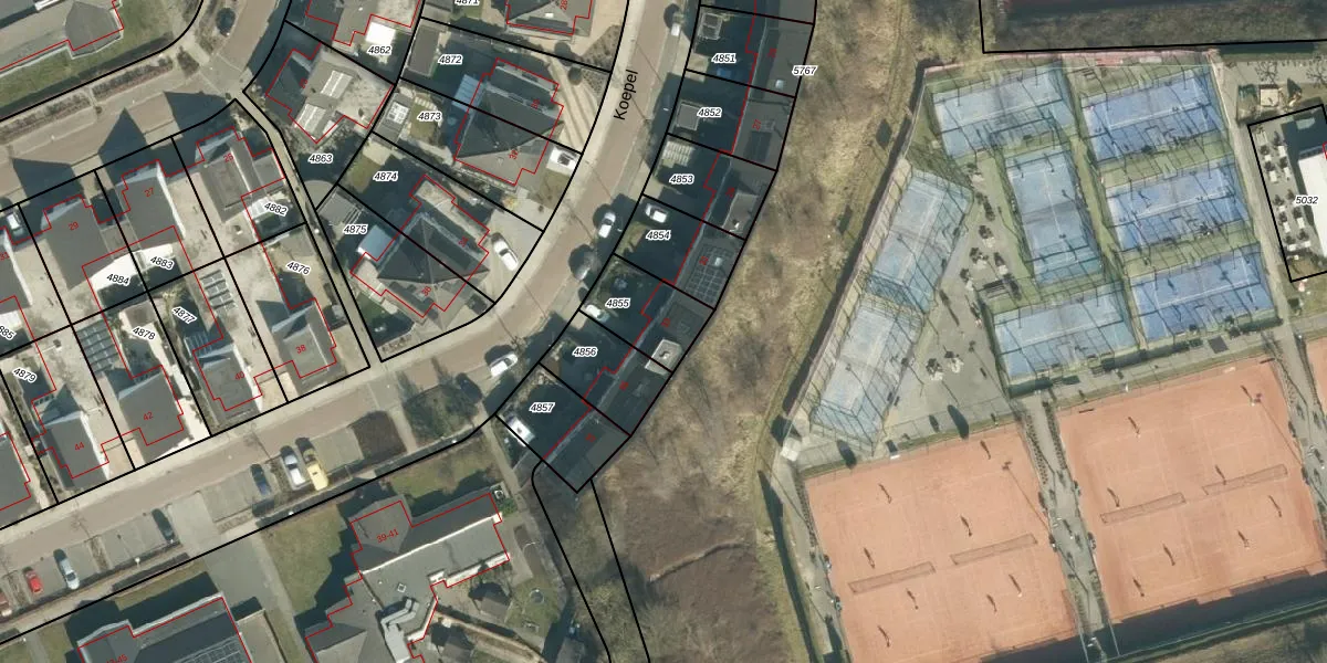 Het perceel waarop Koepel 33 staat heeft een oppervlakte van 186 m². Dit is een middelgroot perceel. De perceeloppervlakte wordt geregistreerd door het Kadaster. Gedetailleerde informatie over de maten van dit perceel kunt u vinden in het rapport Kadastrale kaart met maatvoering van Koepel 33.