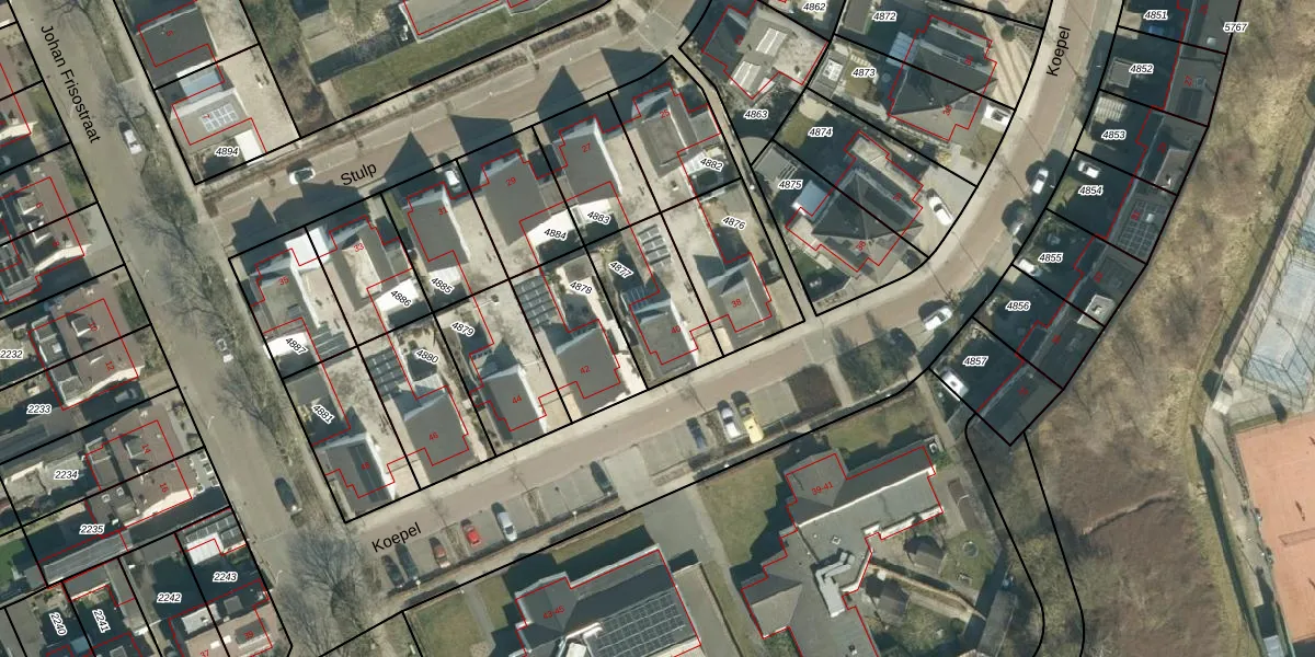 Het perceel waarop Koepel 40 staat heeft een oppervlakte van 301 m². Dit is een groot perceel. De perceeloppervlakte wordt geregistreerd door het Kadaster. Gedetailleerde informatie over de maten van dit perceel kunt u vinden in het rapport Kadastrale kaart met maatvoering van Koepel 40.
