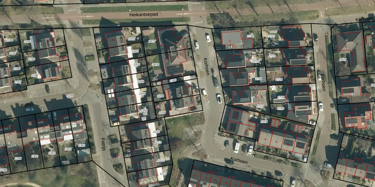 Het perceel waarop Korhoen 28 staat heeft een oppervlakte van 217 m². Dit is een middelgroot perceel. De perceeloppervlakte wordt geregistreerd door het Kadaster. Gedetailleerde informatie over de maten van dit perceel kunt u vinden in het rapport Kadastrale kaart met maatvoering van Korhoen 28.