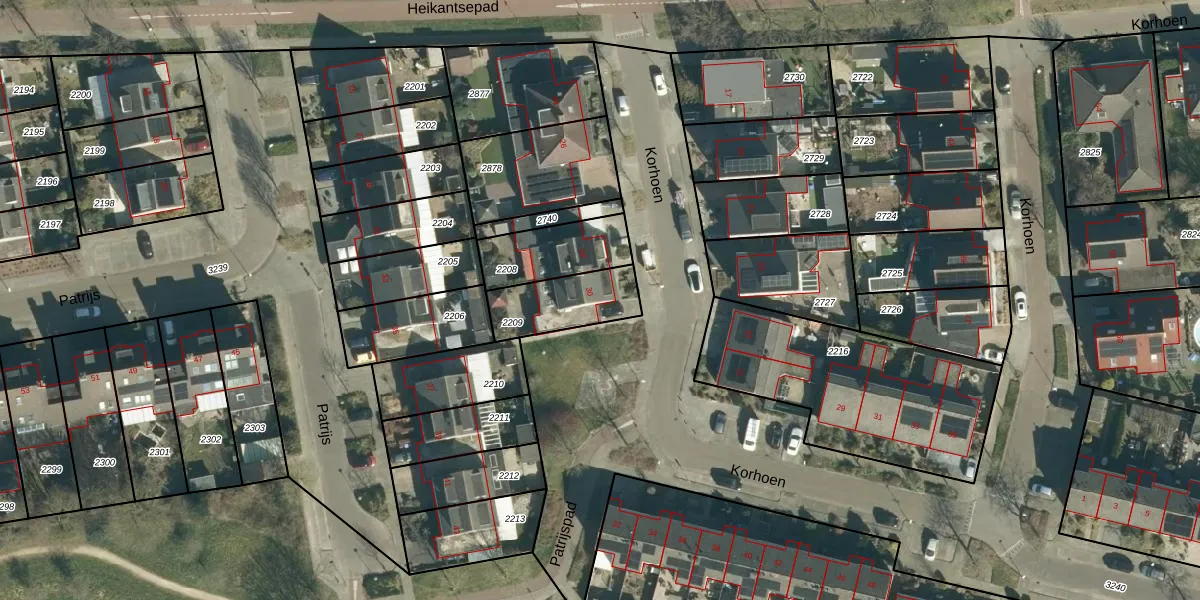 Het perceel waarop Korhoen 30 staat heeft een oppervlakte van 216 m². Dit is een middelgroot perceel. De perceeloppervlakte wordt geregistreerd door het Kadaster. Gedetailleerde informatie over de maten van dit perceel kunt u vinden in het rapport Kadastrale kaart met maatvoering van Korhoen 30.