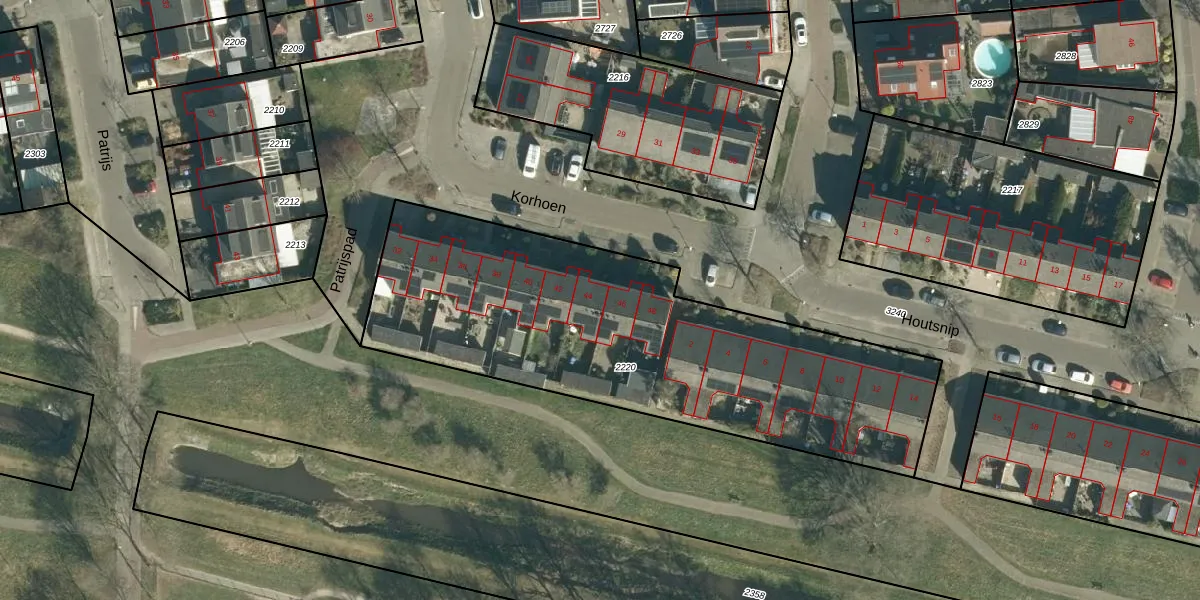 Korhoen 44 is gelegen op kadastraal perceel VHV01I2220. Deze kadastrale aanduiding is uniek en wordt gebruikt door het Kadaster om eigendomsrechten en andere zakelijke rechten vast te leggen. Het perceel maakt onderdeel uit van de kadastrale gemeente Veldhoven.