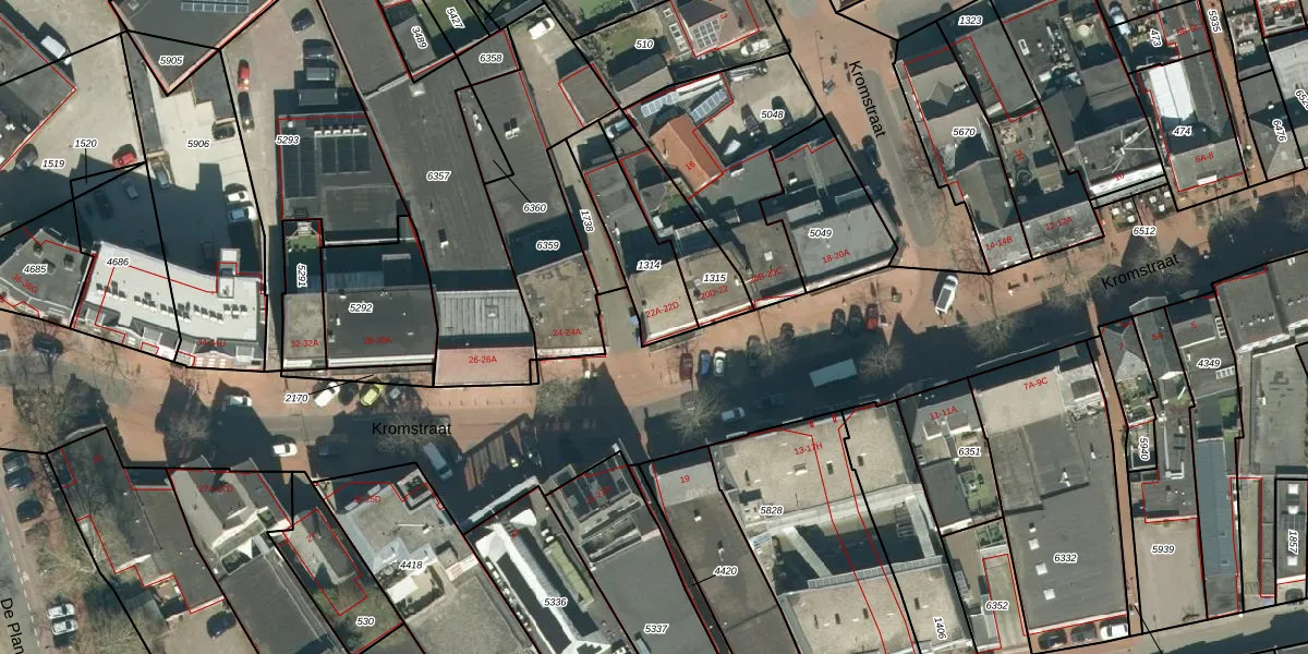 Kromstraat 22-A is gelegen op kadastraal perceel VHV01E1314. Deze kadastrale aanduiding is uniek en wordt gebruikt door het Kadaster om eigendomsrechten en andere zakelijke rechten vast te leggen. Het perceel maakt onderdeel uit van de kadastrale gemeente Veldhoven.
