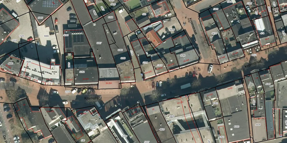 Kromstraat 22-B is gelegen op kadastraal perceel VHV01E1314. Deze kadastrale aanduiding is uniek en wordt gebruikt door het Kadaster om eigendomsrechten en andere zakelijke rechten vast te leggen. Het perceel maakt onderdeel uit van de kadastrale gemeente Veldhoven.
