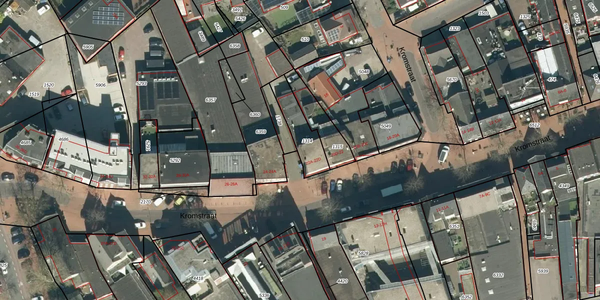 Kromstraat 22-C is gelegen op kadastraal perceel VHV01E1314. Deze kadastrale aanduiding is uniek en wordt gebruikt door het Kadaster om eigendomsrechten en andere zakelijke rechten vast te leggen. Het perceel maakt onderdeel uit van de kadastrale gemeente Veldhoven.