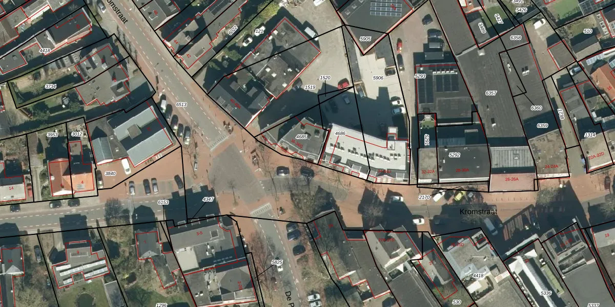 Kromstraat 36 is gelegen op kadastraal perceel VHV01E4685. Deze kadastrale aanduiding is uniek en wordt gebruikt door het Kadaster om eigendomsrechten en andere zakelijke rechten vast te leggen. Het perceel maakt onderdeel uit van de kadastrale gemeente Veldhoven.