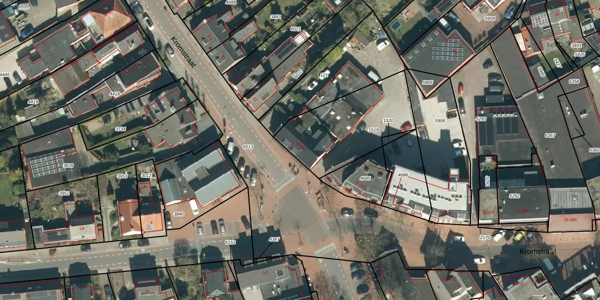Kromstraat 40 is gelegen op kadastraal perceel VHV01E1519. Deze kadastrale aanduiding is uniek en wordt gebruikt door het Kadaster om eigendomsrechten en andere zakelijke rechten vast te leggen. Het perceel maakt onderdeel uit van de kadastrale gemeente Veldhoven.