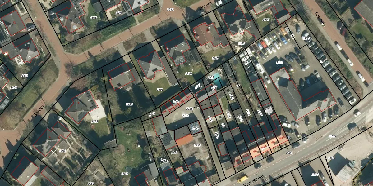 Het perceel waarop Kruisstraat 99-F staat heeft een oppervlakte van 114 m². Dit is een middelgroot perceel. De perceeloppervlakte wordt geregistreerd door het Kadaster. Gedetailleerde informatie over de maten van dit perceel kunt u vinden in het rapport Kadastrale kaart met maatvoering van Kruisstraat 99-F.