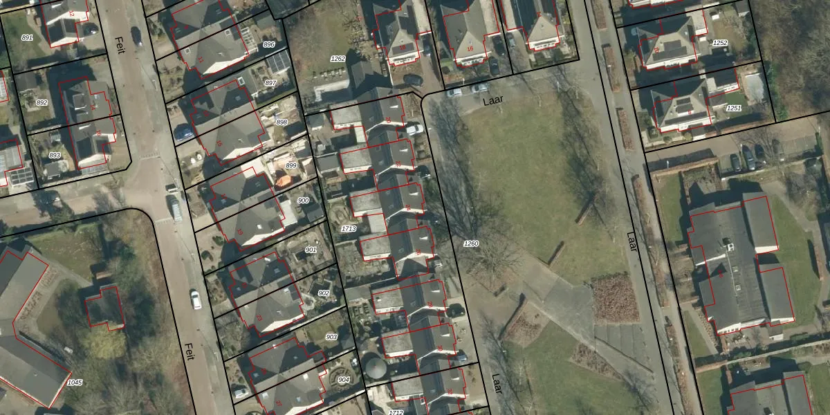 Het perceel waarop Laar 24 staat heeft een oppervlakte van 1873 m². Dit is een zeer groot perceel. De perceeloppervlakte wordt geregistreerd door het Kadaster. Gedetailleerde informatie over de maten van dit perceel kunt u vinden in het rapport Kadastrale kaart met maatvoering van Laar 24.