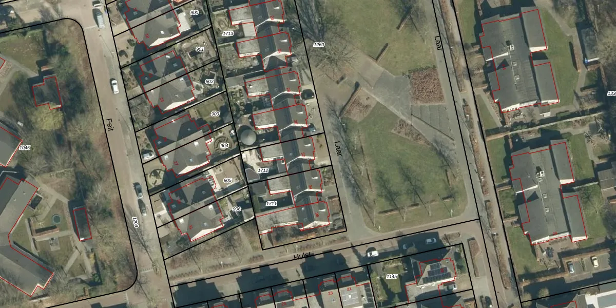 Het perceel waarop Laar 32 staat heeft een oppervlakte van 301 m². Dit is een groot perceel. De perceeloppervlakte wordt geregistreerd door het Kadaster. Gedetailleerde informatie over de maten van dit perceel kunt u vinden in het rapport Kadastrale kaart met maatvoering van Laar 32.