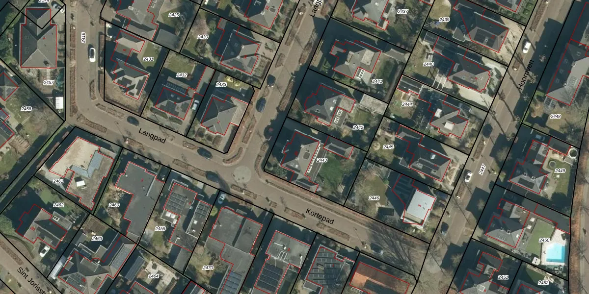 Langpad 39 is gelegen op kadastraal perceel VHV01K2443. Deze kadastrale aanduiding is uniek en wordt gebruikt door het Kadaster om eigendomsrechten en andere zakelijke rechten vast te leggen. Het perceel maakt onderdeel uit van de kadastrale gemeente Veldhoven.