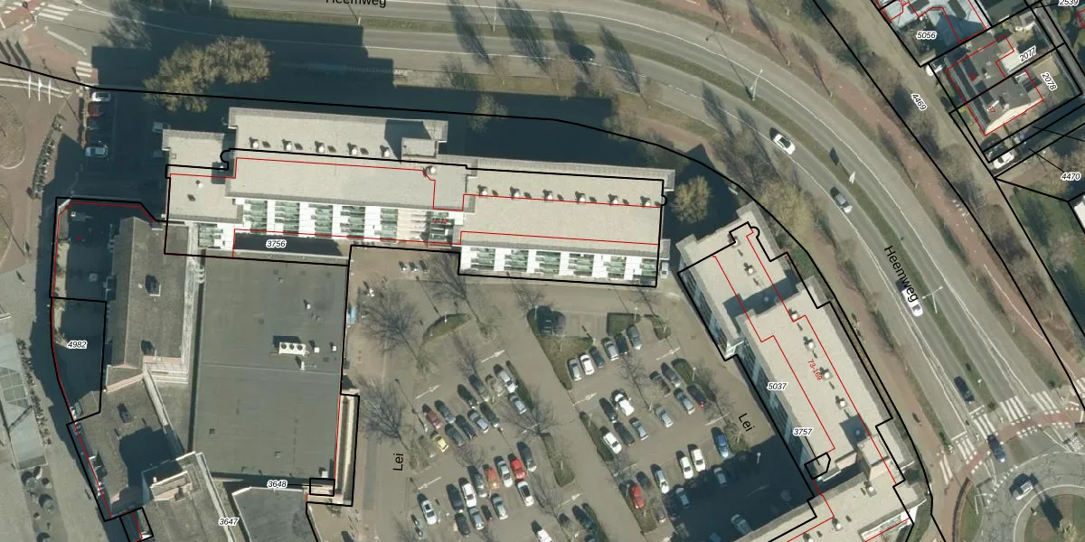Lei 10 is gelegen op kadastraal perceel VHV01D3756. Deze kadastrale aanduiding is uniek en wordt gebruikt door het Kadaster om eigendomsrechten en andere zakelijke rechten vast te leggen. Het perceel maakt onderdeel uit van de kadastrale gemeente Veldhoven.
