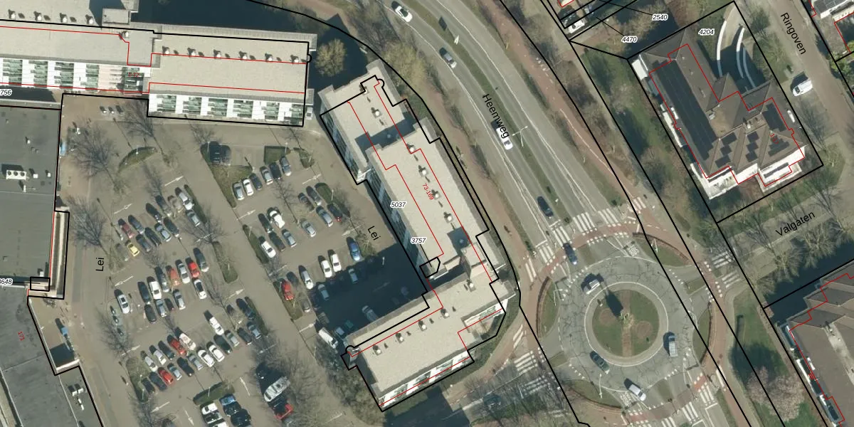 Lei 107 is gelegen op kadastraal perceel VHV01D5037. Deze kadastrale aanduiding is uniek en wordt gebruikt door het Kadaster om eigendomsrechten en andere zakelijke rechten vast te leggen. Het perceel maakt onderdeel uit van de kadastrale gemeente Veldhoven.