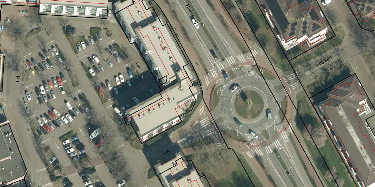 Lei 110 is gelegen op kadastraal perceel VHV01D5037. Deze kadastrale aanduiding is uniek en wordt gebruikt door het Kadaster om eigendomsrechten en andere zakelijke rechten vast te leggen. Het perceel maakt onderdeel uit van de kadastrale gemeente Veldhoven.
