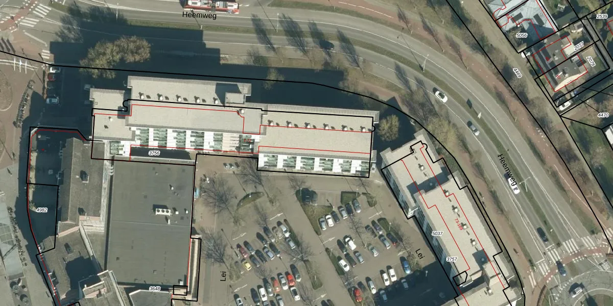 Lei 38 is gelegen op kadastraal perceel VHV01D3756. Deze kadastrale aanduiding is uniek en wordt gebruikt door het Kadaster om eigendomsrechten en andere zakelijke rechten vast te leggen. Het perceel maakt onderdeel uit van de kadastrale gemeente Veldhoven.