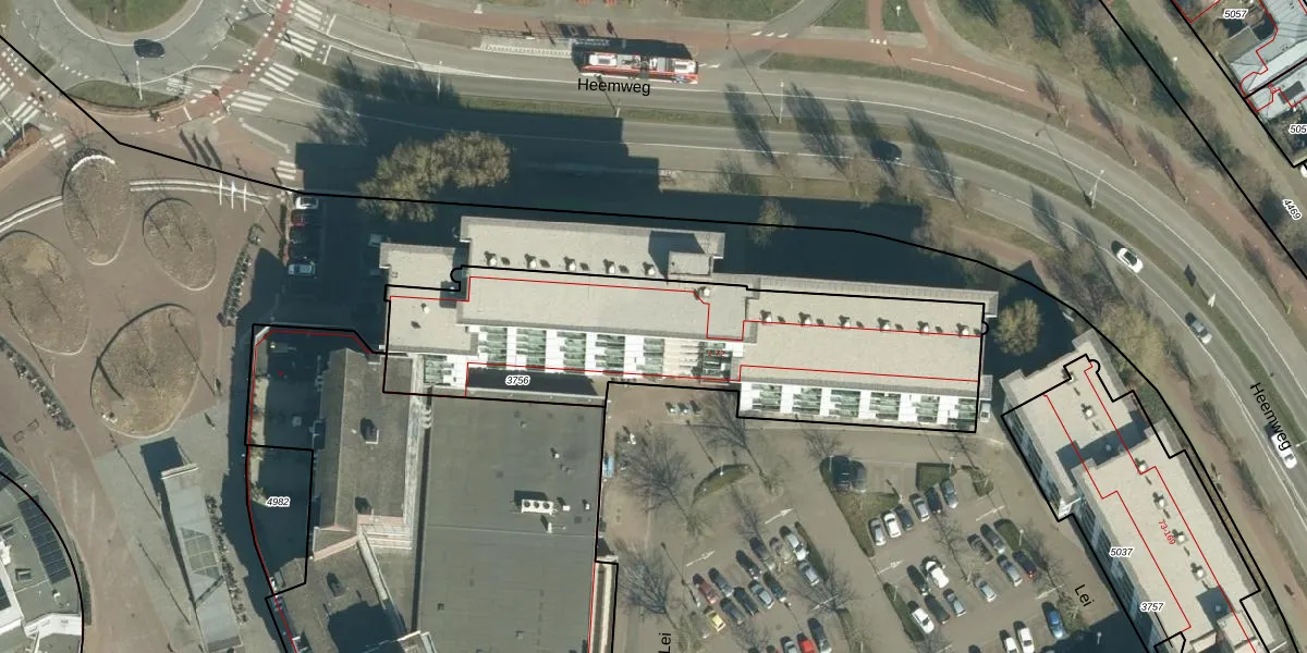 Het perceel waarop Lei 48 staat heeft een oppervlakte van 1693 m². Dit is een zeer groot perceel. De perceeloppervlakte wordt geregistreerd door het Kadaster. Gedetailleerde informatie over de maten van dit perceel kunt u vinden in het rapport Kadastrale kaart met maatvoering van Lei 48.
