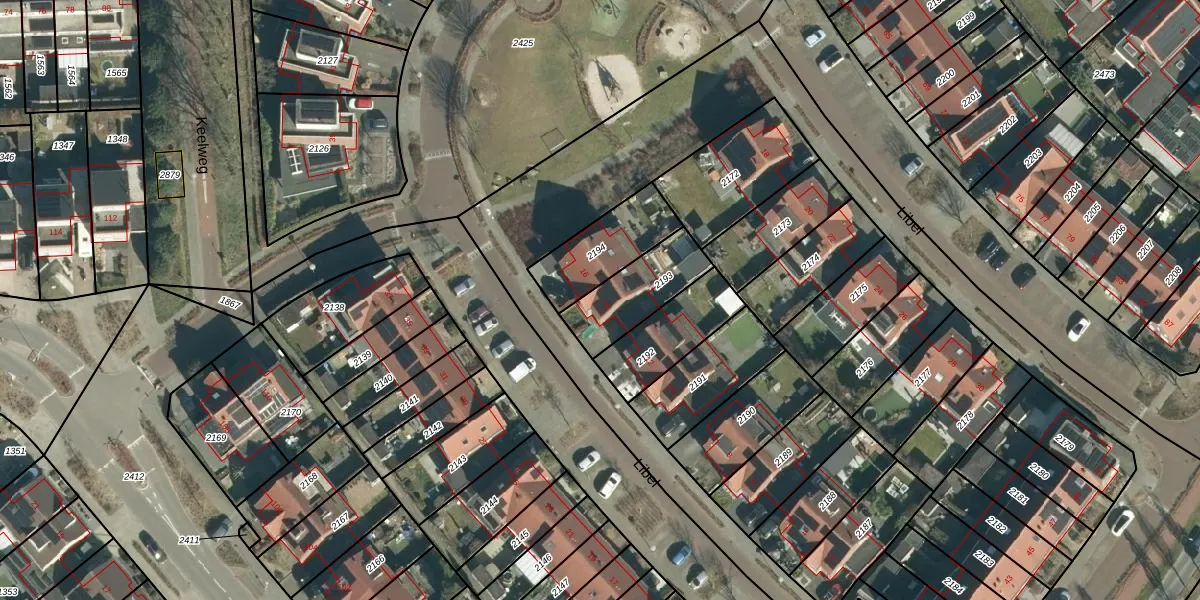 Gebruik de zoekbalk of klik op een perceel voor informatie over de adressen binnen dit perceel.