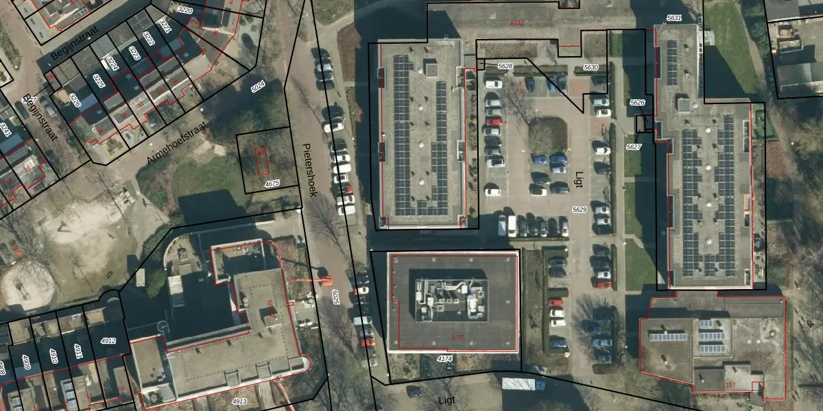 Het adres ligt op het perceel VHV01-D-5631, dat zich in de kadastrale gemeente Veldhoven bevindt. Het perceel is met 3401 m² relatief groot. Het gemiddelde ligt in de kadastrale gemeente Veldhoven op 1485,6 m². De grootste perceeloppervlakte in de kadastrale gemeente is 78,9 ha. De kleinste oppervlakte bedraagt 0 m². Op het perceel liggen in totaal 77 adressen. In de Basisregistratie Kadaster (BRK) werden de grenzen van het perceel geregistreerd op 05-05-2021.