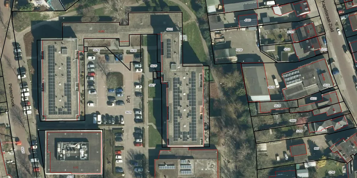 Het adres ligt op het perceel VHV01-D-5631, dat zich in de kadastrale gemeente Veldhoven bevindt. Het perceel is met 3401 m² relatief groot. Het gemiddelde ligt in de kadastrale gemeente Veldhoven op 1485,39 m². Het kleinste perceel in de kadastrale gemeente is 0 m² groot. De grootste perceeloppervlakte is 78,9 ha. Op het perceel zijn 77 adressen aanwezig. De huidige grenzen van het perceel zijn digitaal in de Basisregistratie Kadaster (BRK) geregistreerd op 05-05-2021.