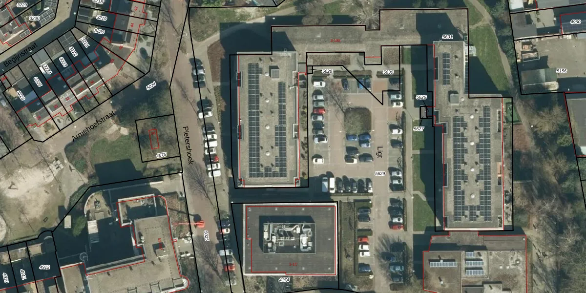 Het adres ligt op het perceel VHV01-D-5631, dat zich in de kadastrale gemeente Veldhoven bevindt. Het perceel is met 3401 m² relatief groot. Het gemiddelde ligt in de kadastrale gemeente Veldhoven op 1485,6 m². Het grootste perceel in de kadastrale gemeente is 78,9 ha. Het kleinste perceel heeft een oppervlakte van 0 m². Er zijn 77 adressen aanwezig op het perceel. De huidige grenzen van het perceel zijn digitaal in de Basisregistratie Kadaster (BRK) geregistreerd op 05-05-2021.