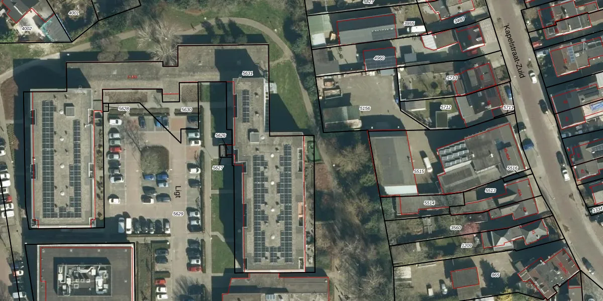 Het perceel waarop het adres ligt is VHV01-D-5631. De afkorting 'VHV01' staat voor kadastrale gemeente Veldhoven. De oppervlakte van het perceel is 3401 m². Dat is groter dan gemiddeld in Veldhoven, waar de gemiddelde perceeloppervlakte op 1487,06 m² ligt. Het grootste perceel in de kadastrale gemeente is 78,9 ha. Het kleinste perceel heeft een oppervlakte van 0 m². Er zijn 77 adressen aanwezig op het perceel. De huidige grenzen van het perceel zijn digitaal in de Basisregistratie Kadaster (BRK) geregistreerd op 05-05-2021.