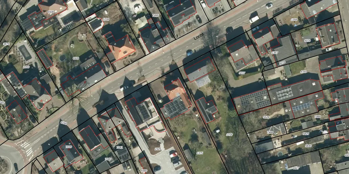 Het perceel waarop Locht 15 staat heeft een oppervlakte van 1503 m². Dit is een zeer groot perceel. De perceeloppervlakte wordt geregistreerd door het Kadaster. Gedetailleerde informatie over de maten van dit perceel kunt u vinden in het rapport Kadastrale kaart met maatvoering van Locht 15.