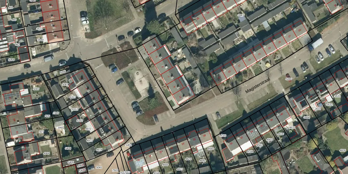 Magisterstraat 9 is gelegen op kadastraal perceel VHV01A3947. Deze kadastrale aanduiding is uniek en wordt gebruikt door het Kadaster om eigendomsrechten en andere zakelijke rechten vast te leggen. Het perceel maakt onderdeel uit van de kadastrale gemeente Veldhoven.