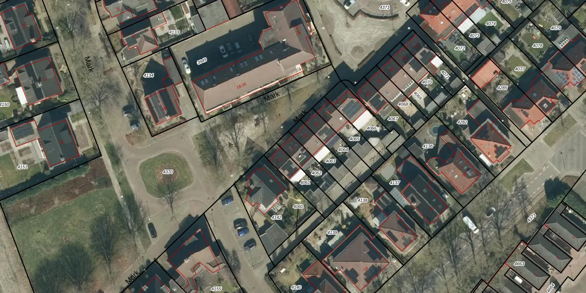 Het perceel waarop Mark 8 staat heeft een oppervlakte van 173 m². Dit is een middelgroot perceel. De perceeloppervlakte wordt geregistreerd door het Kadaster. Gedetailleerde informatie over de maten van dit perceel kunt u vinden in het rapport Kadastrale kaart met maatvoering van Mark 8.