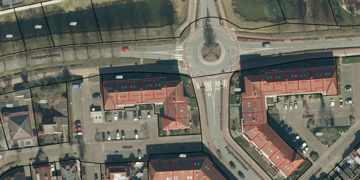 Het perceel waarop het adres ligt is VHV01-C-4312. De afkorting 'VHV01' staat voor kadastrale gemeente Veldhoven. Het perceel is 1322 m² groot. Dat is kleiner dan de gemiddelde perceeloppervlakte in Veldhoven, dat op 1489,56 m² ligt. Het grootste perceel in de kadastrale gemeente is 78,9 ha. Het kleinste perceel heeft een oppervlakte van 0 m². Er zijn 22 adressen aanwezig op het perceel. In de Basisregistratie Kadaster (BRK) werden de grenzen van het perceel geregistreerd op 15-12-2008.