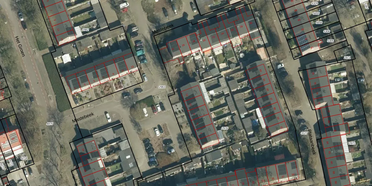 Mastebeek 12 is gelegen op kadastraal perceel VHV01D2976. Deze kadastrale aanduiding is uniek en wordt gebruikt door het Kadaster om eigendomsrechten en andere zakelijke rechten vast te leggen. Het perceel maakt onderdeel uit van de kadastrale gemeente Veldhoven.