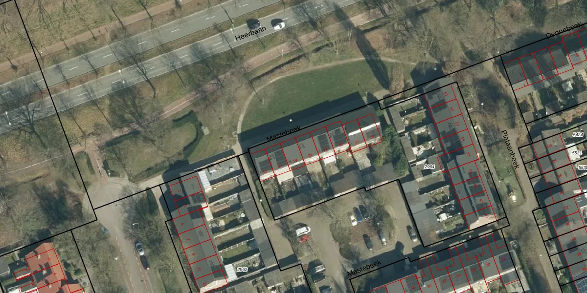 Het perceel waarop Mastebeek 19 staat heeft een oppervlakte van 2658 m². Dit is een zeer groot perceel. De perceeloppervlakte wordt geregistreerd door het Kadaster. Gedetailleerde informatie over de maten van dit perceel kunt u vinden in het rapport Kadastrale kaart met maatvoering van Mastebeek 19.