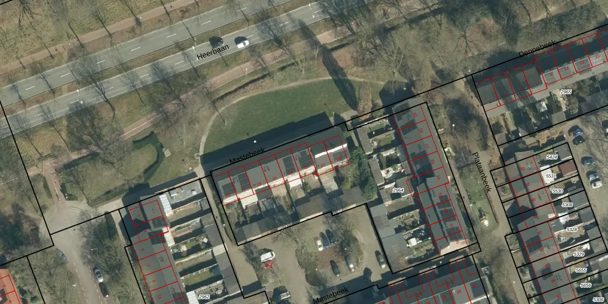 Het perceel waarop Mastebeek 25 staat heeft een oppervlakte van 2658 m². Dit is een zeer groot perceel. De perceeloppervlakte wordt geregistreerd door het Kadaster. Gedetailleerde informatie over de maten van dit perceel kunt u vinden in het rapport Kadastrale kaart met maatvoering van Mastebeek 25.