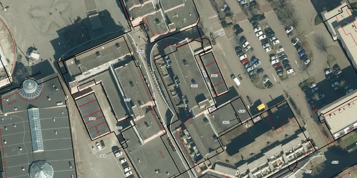 Het perceel waarop het adres ligt is VHV01-D-3641. De afkorting 'VHV01' staat voor kadastrale gemeente Veldhoven. De oppervlakte van het perceel is 1663 m². Dat is groter dan gemiddeld in Veldhoven, waar de gemiddelde perceeloppervlakte op 1489,77 m² ligt. De grootste perceeloppervlakte in de kadastrale gemeente is 78,9 ha. De kleinste oppervlakte bedraagt 0 m². Op het perceel liggen in totaal 34 adressen. De huidige grenzen van het perceel zijn digitaal in de Basisregistratie Kadaster (BRK) geregistreerd op 13-01-2009.