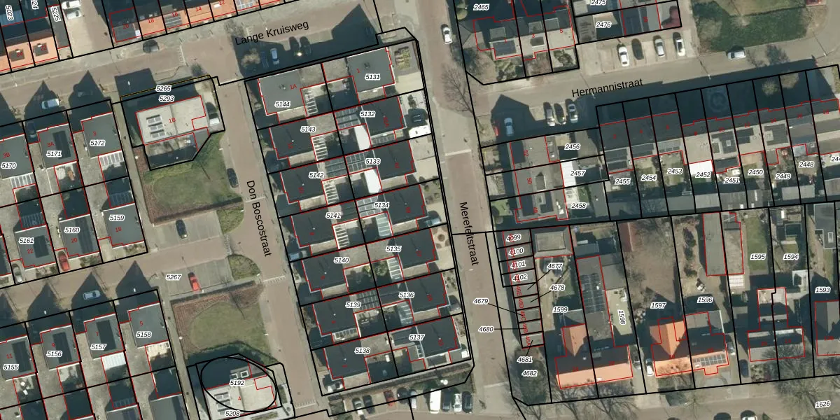Merefeltstraat 59 is gelegen op kadastraal perceel VHV01A5134. Deze kadastrale aanduiding is uniek en wordt gebruikt door het Kadaster om eigendomsrechten en andere zakelijke rechten vast te leggen. Het perceel maakt onderdeel uit van de kadastrale gemeente Veldhoven.