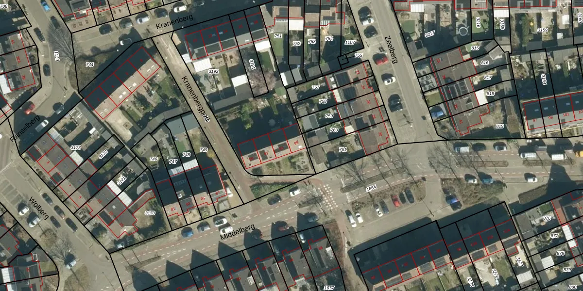 Middelberg 95 is gelegen op kadastraal perceel VHV01I3192. Deze kadastrale aanduiding is uniek en wordt gebruikt door het Kadaster om eigendomsrechten en andere zakelijke rechten vast te leggen. Het perceel maakt onderdeel uit van de kadastrale gemeente Veldhoven.