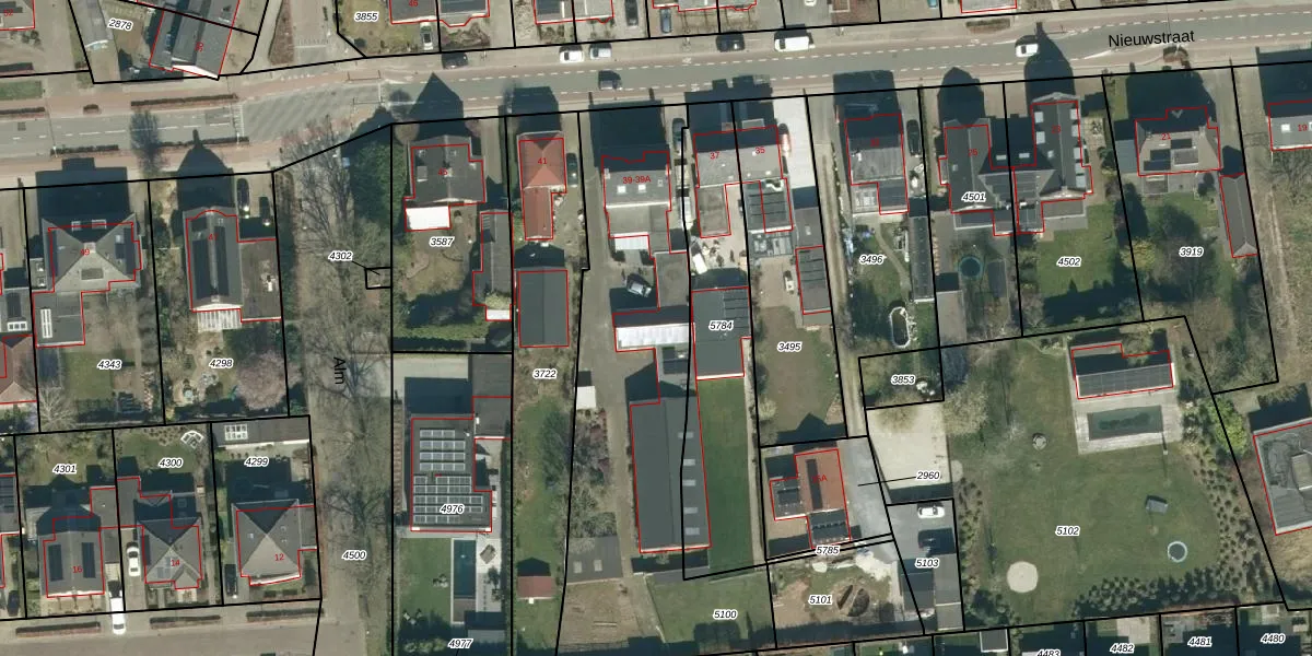 Nieuwstraat 39-A is gelegen op kadastraal perceel VHV01C5100. Deze kadastrale aanduiding is uniek en wordt gebruikt door het Kadaster om eigendomsrechten en andere zakelijke rechten vast te leggen. Het perceel maakt onderdeel uit van de kadastrale gemeente Veldhoven.