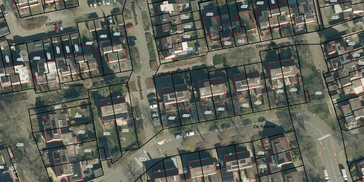 Olmebeek 4 is gelegen op kadastraal perceel VHV01E4106. Deze kadastrale aanduiding is uniek en wordt gebruikt door het Kadaster om eigendomsrechten en andere zakelijke rechten vast te leggen. Het perceel maakt onderdeel uit van de kadastrale gemeente Veldhoven.