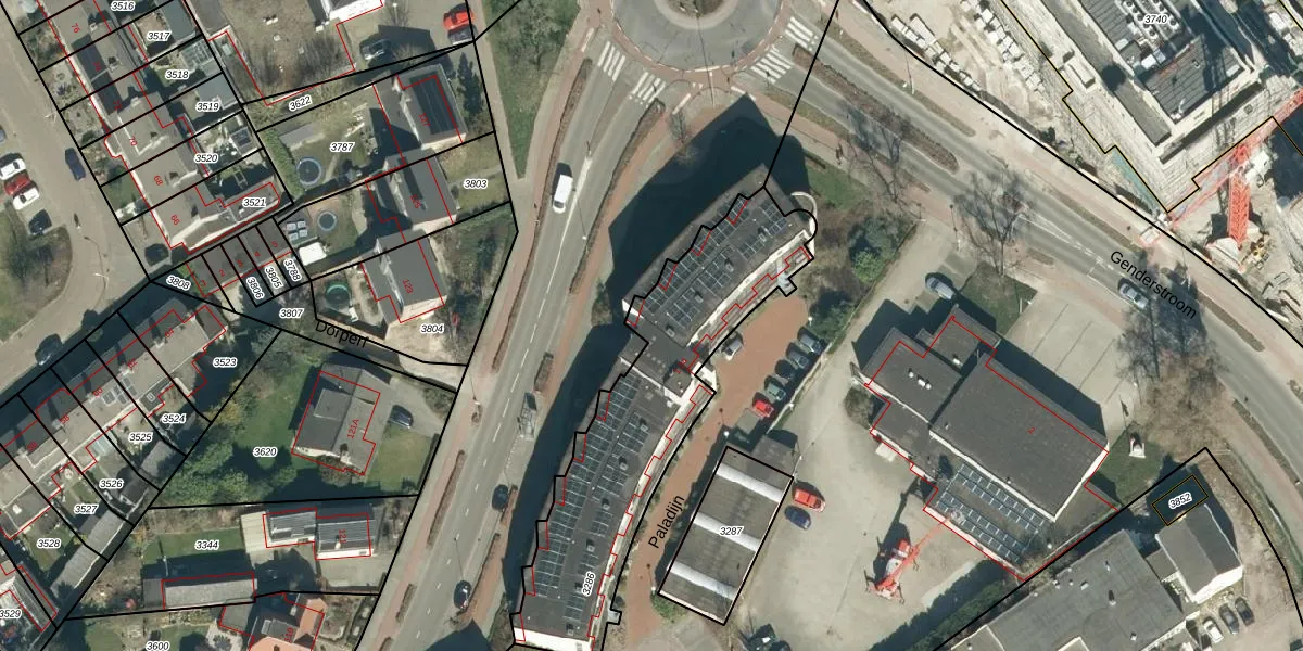 Het perceel waarop Paladijn 31 staat heeft een oppervlakte van 1076 m². Dit is een zeer groot perceel. De perceeloppervlakte wordt geregistreerd door het Kadaster. Gedetailleerde informatie over de maten van dit perceel kunt u vinden in het rapport Kadastrale kaart met maatvoering van Paladijn 31.