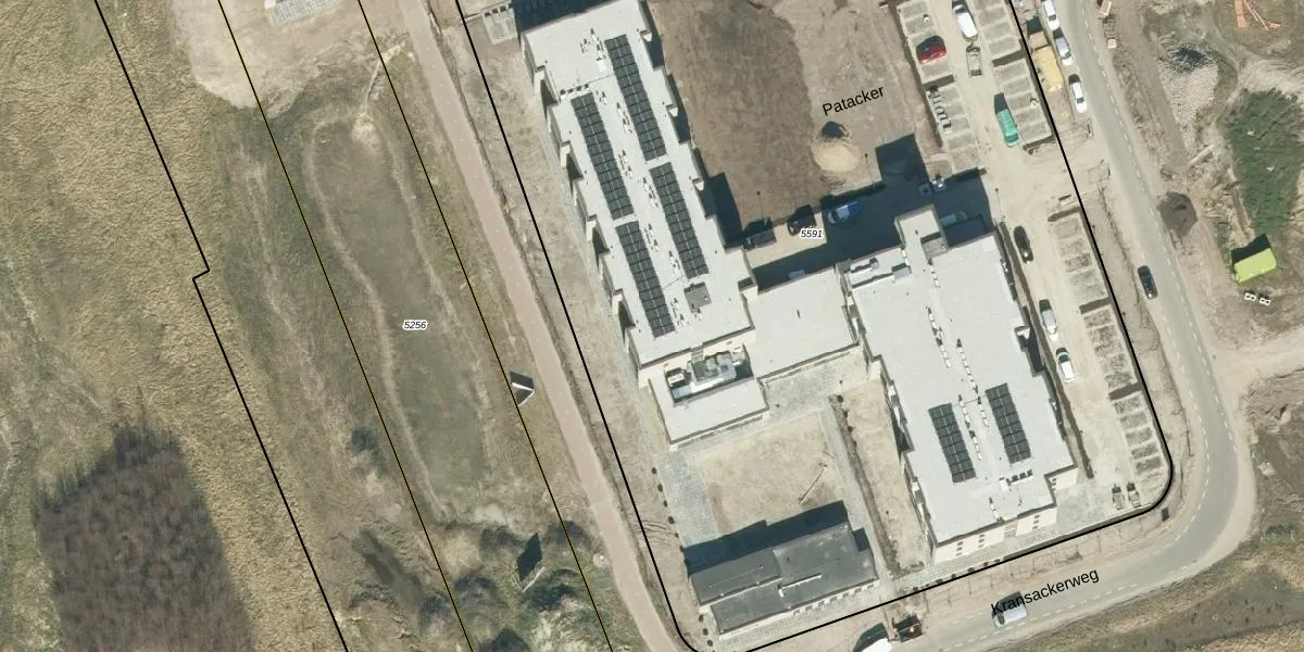 Het perceel waarop Patacker 118 staat heeft een oppervlakte van 9150 m². Dit is een zeer groot perceel. De perceeloppervlakte wordt geregistreerd door het Kadaster. Gedetailleerde informatie over de maten van dit perceel kunt u vinden in het rapport Kadastrale kaart met maatvoering van Patacker 118.
