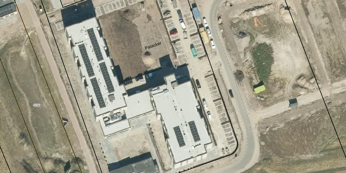 Het perceel waarop Patacker 56 staat heeft een oppervlakte van 9150 m². Dit is een zeer groot perceel. De perceeloppervlakte wordt geregistreerd door het Kadaster. Gedetailleerde informatie over de maten van dit perceel kunt u vinden in het rapport Kadastrale kaart met maatvoering van Patacker 56.