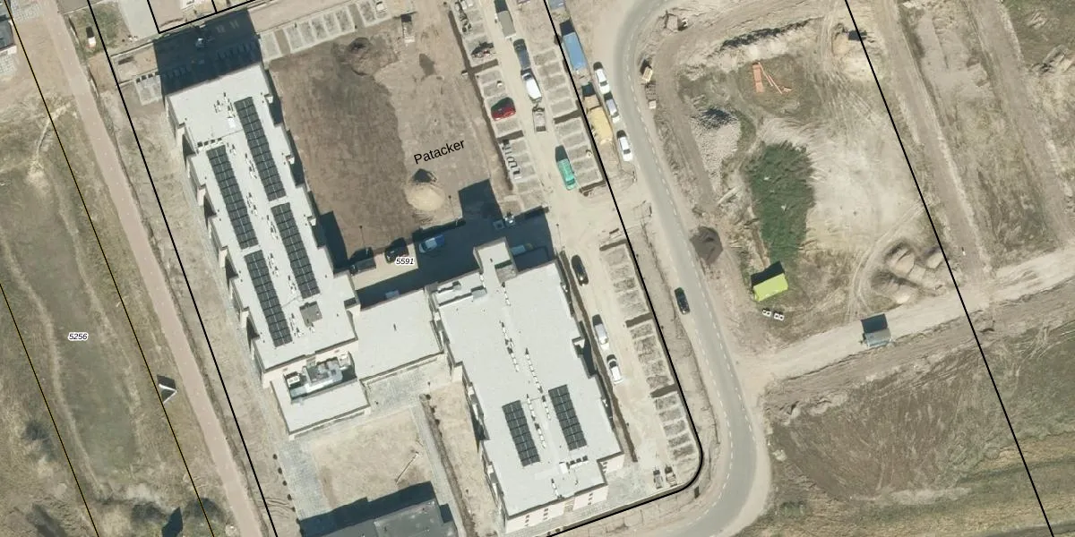 Het perceel waarop Patacker 60 staat heeft een oppervlakte van 9150 m². Dit is een zeer groot perceel. De perceeloppervlakte wordt geregistreerd door het Kadaster. Gedetailleerde informatie over de maten van dit perceel kunt u vinden in het rapport Kadastrale kaart met maatvoering van Patacker 60.