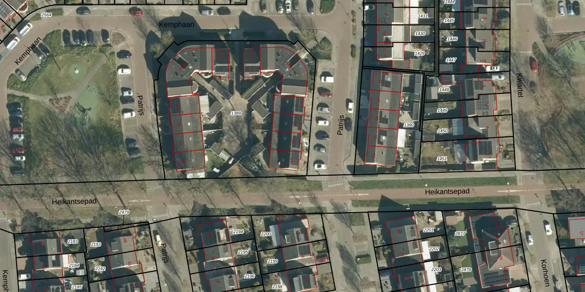 Patrijs 12 is gelegen op kadastraal perceel VHV01F1389. Deze kadastrale aanduiding is uniek en wordt gebruikt door het Kadaster om eigendomsrechten en andere zakelijke rechten vast te leggen. Het perceel maakt onderdeel uit van de kadastrale gemeente Veldhoven.