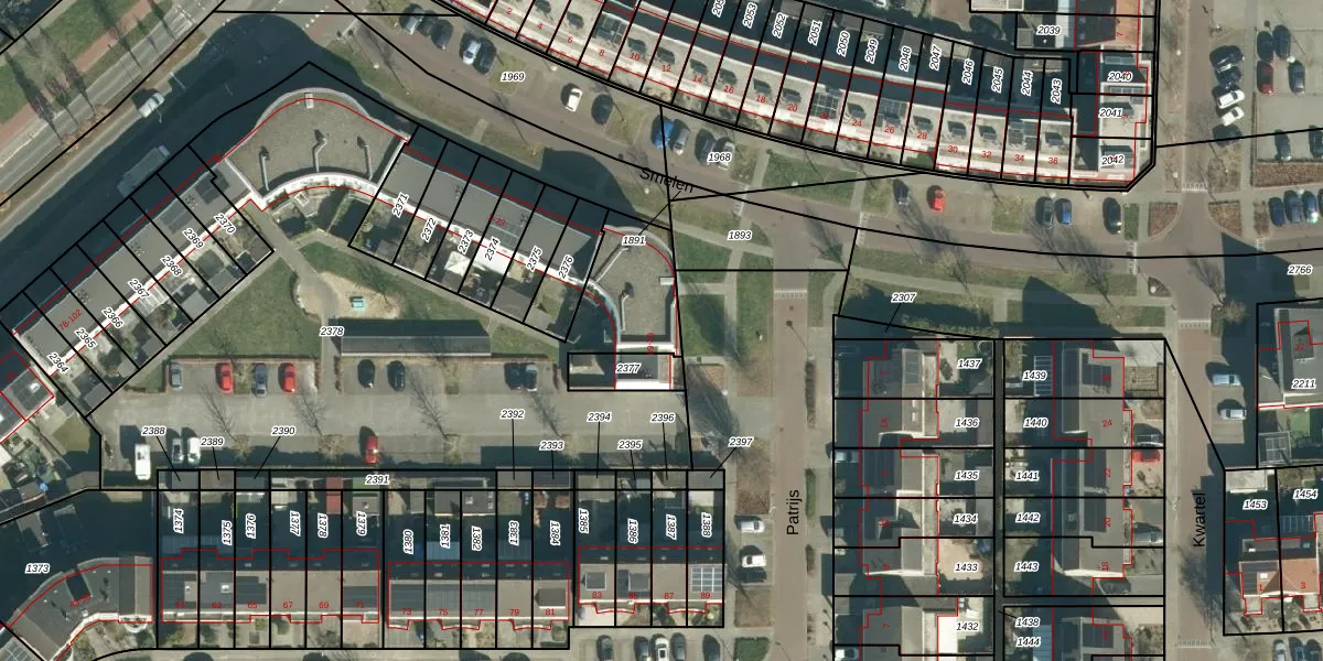 Het perceel waarop Patrijs 64 staat heeft een oppervlakte van 2948 m². Dit is een zeer groot perceel. De perceeloppervlakte wordt geregistreerd door het Kadaster. Gedetailleerde informatie over de maten van dit perceel kunt u vinden in het rapport Kadastrale kaart met maatvoering van Patrijs 64.