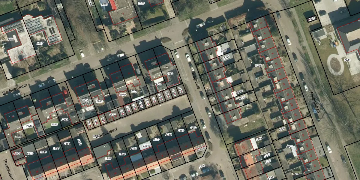 Het perceel waarop Pegasuserf 1 staat heeft een oppervlakte van 24 m². Dit is een klein perceel. De perceeloppervlakte wordt geregistreerd door het Kadaster. Gedetailleerde informatie over de maten van dit perceel kunt u vinden in het rapport Kadastrale kaart met maatvoering van Pegasuserf 1.